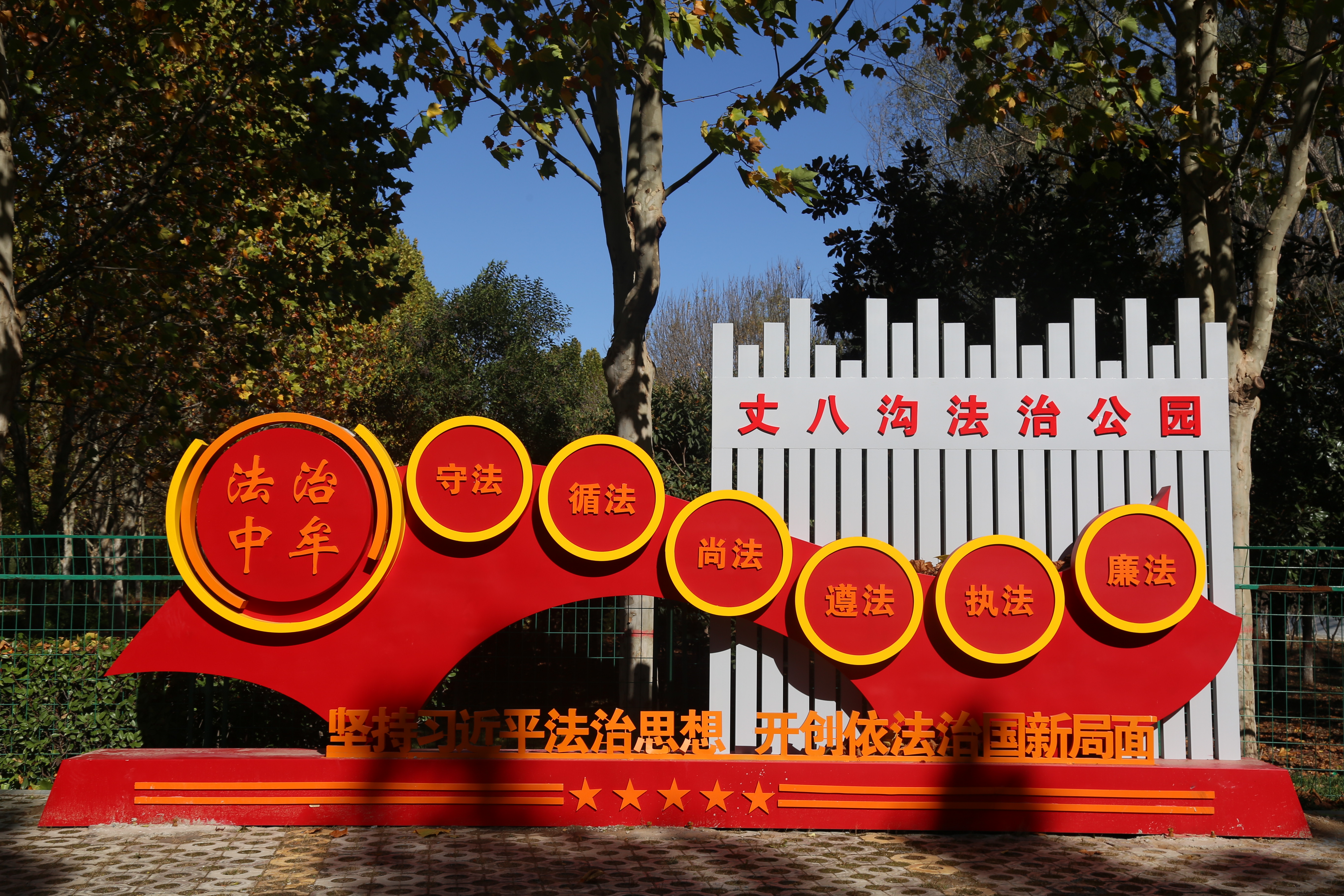 中牟县司法局在原有丈八沟公园的基础设施上注入法治元素、法治文化,围绕宣传贯彻习近平法治思想,突出宪法、民法典和青少年法治宣传教育“三大主题”,设计、规划、建成了“丈八沟法治文化主题公园”,公园占地约52300平方米,地址位于中牟县商都路与祥云街交叉口。