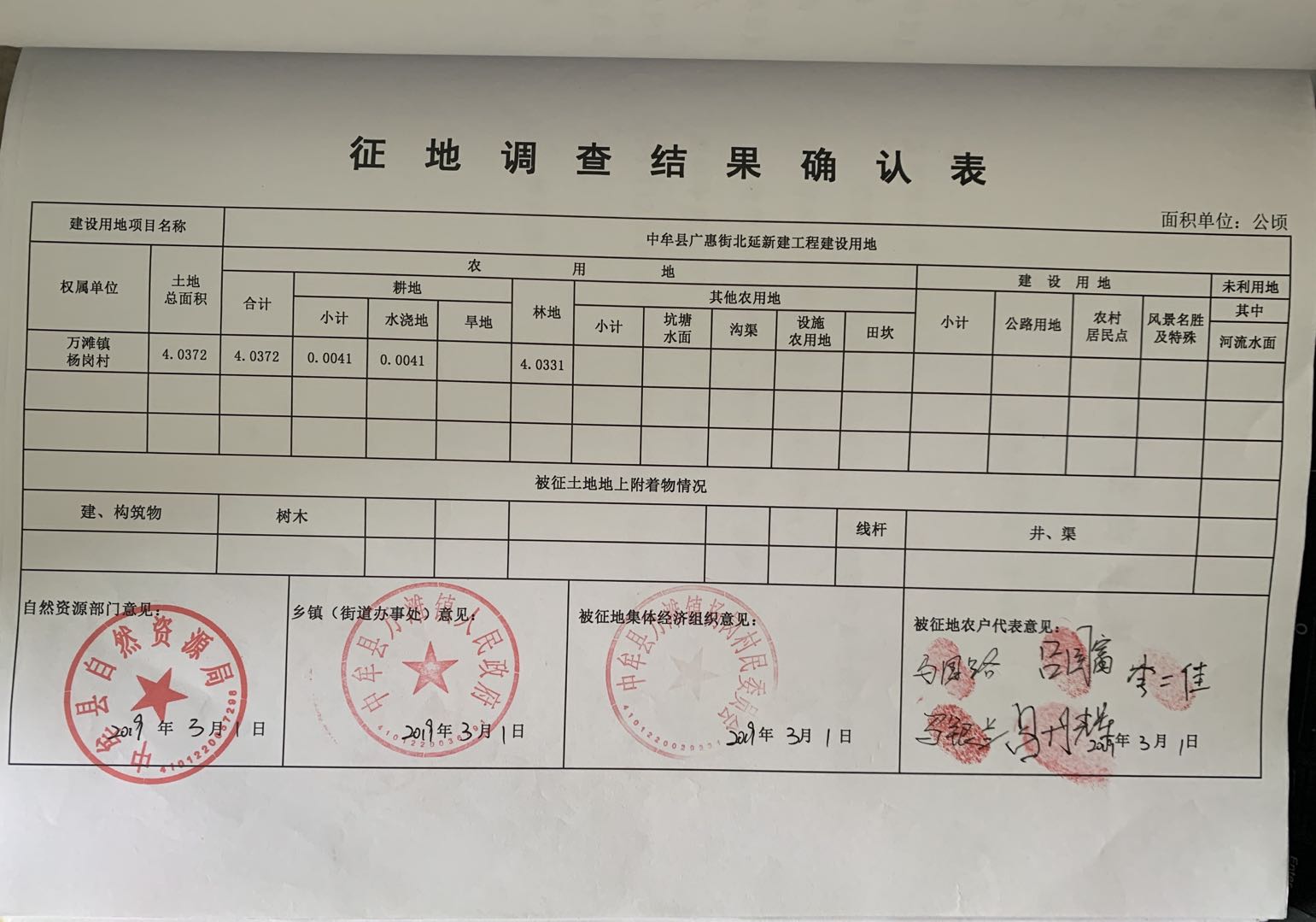 万滩镇杨岗村征地调查结果确认表