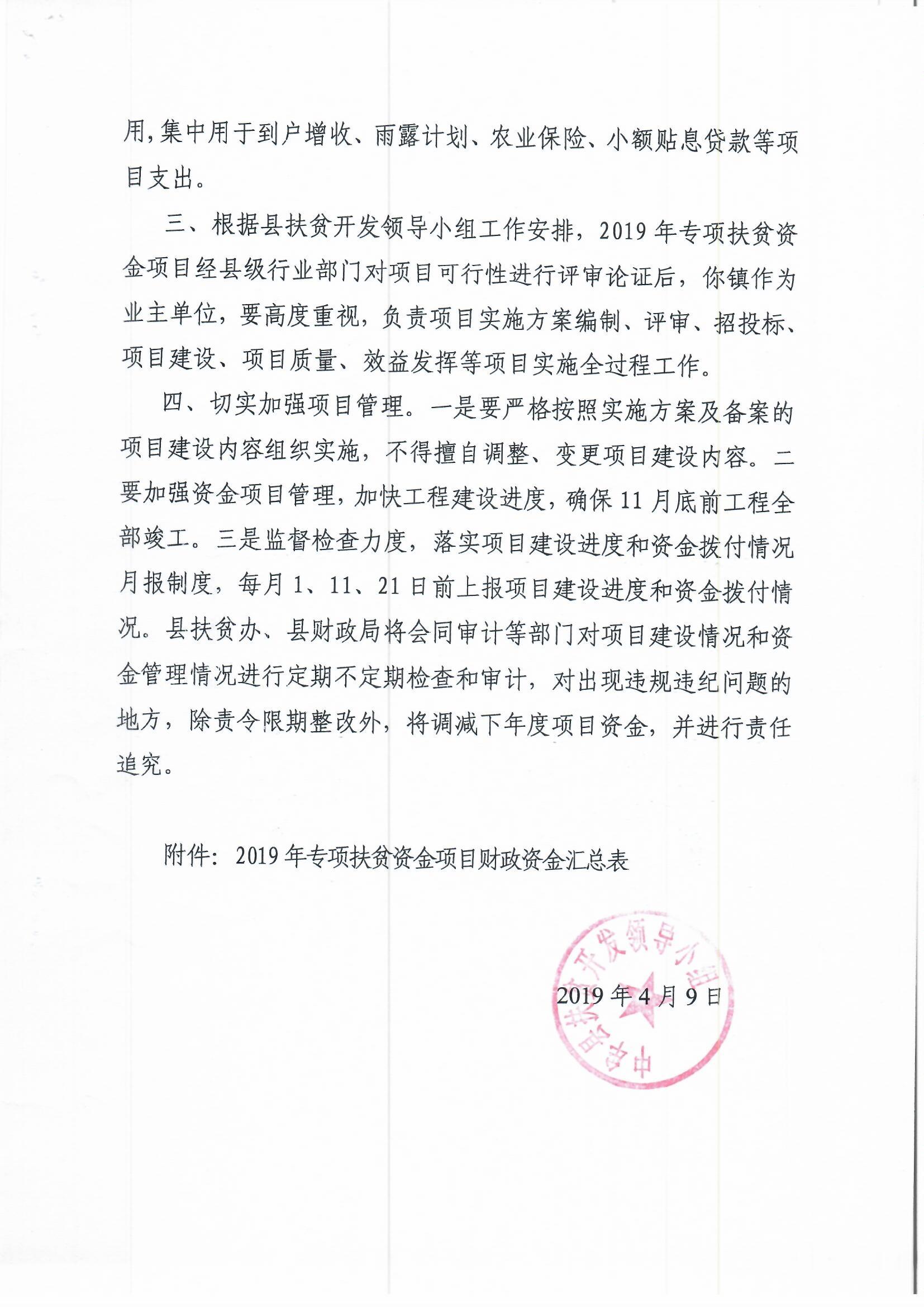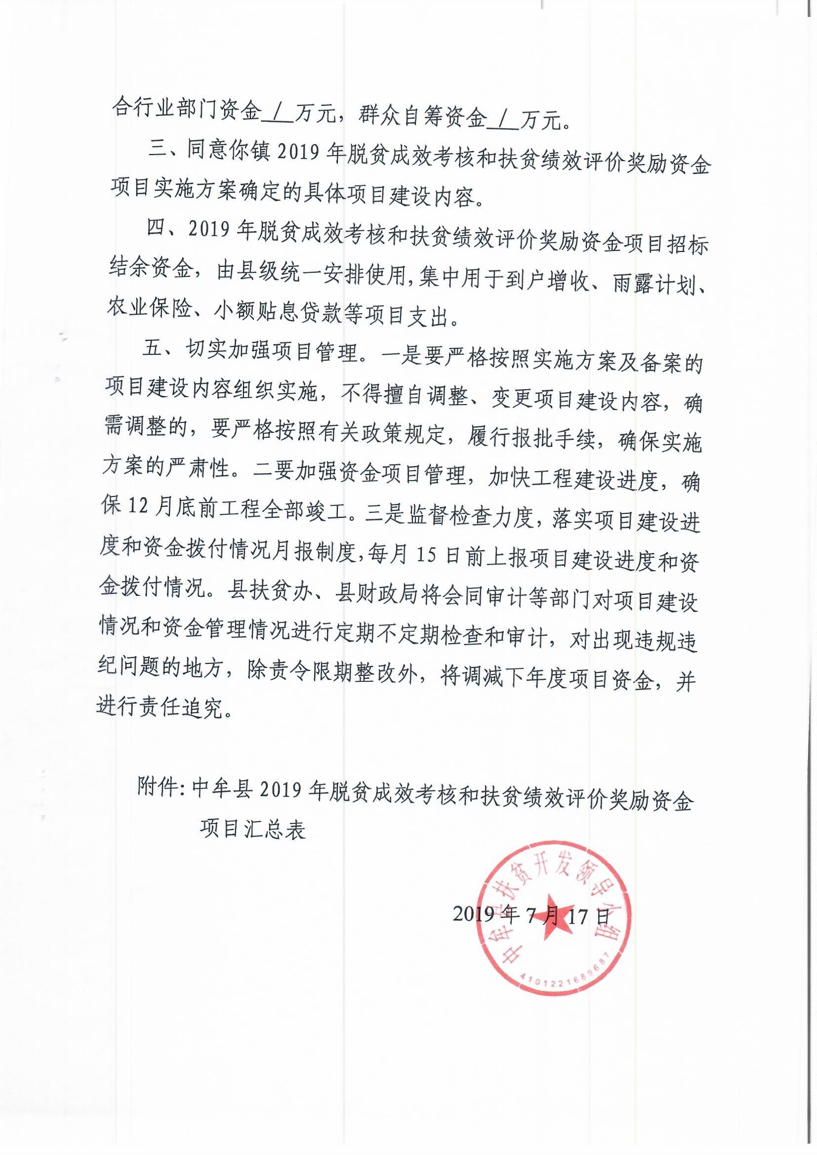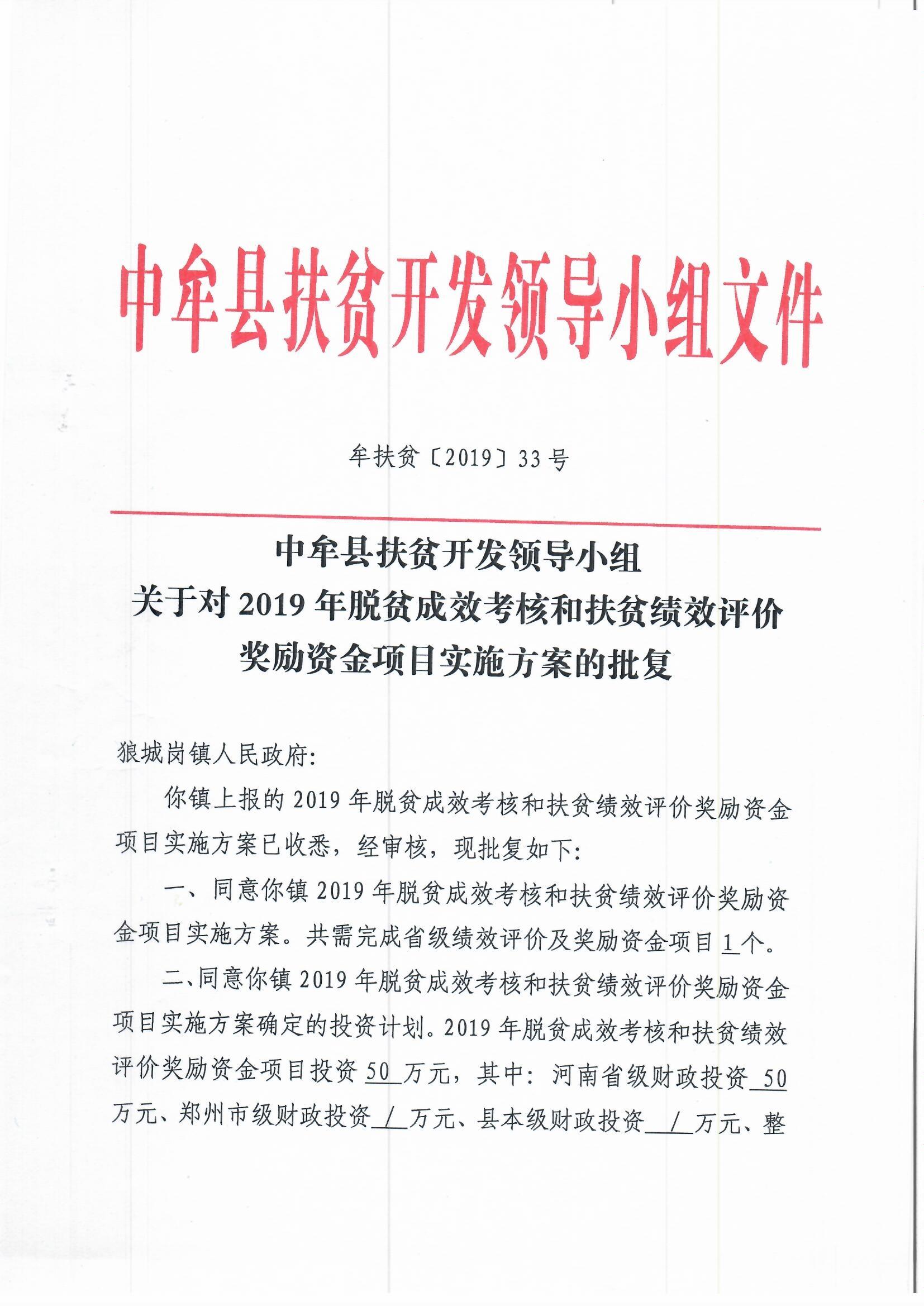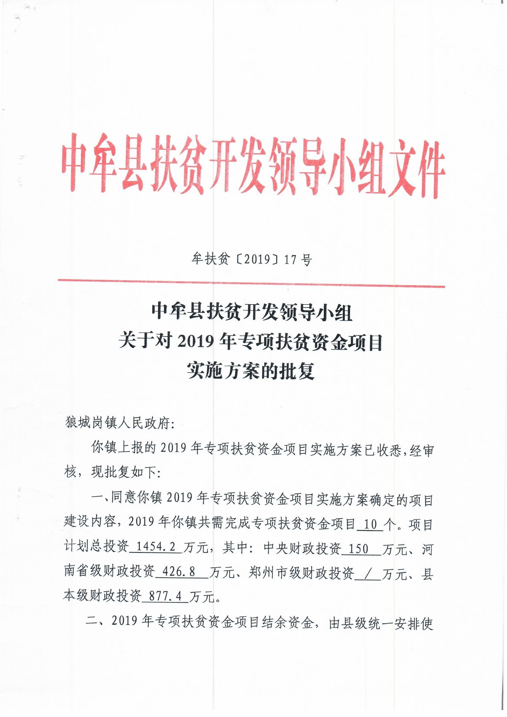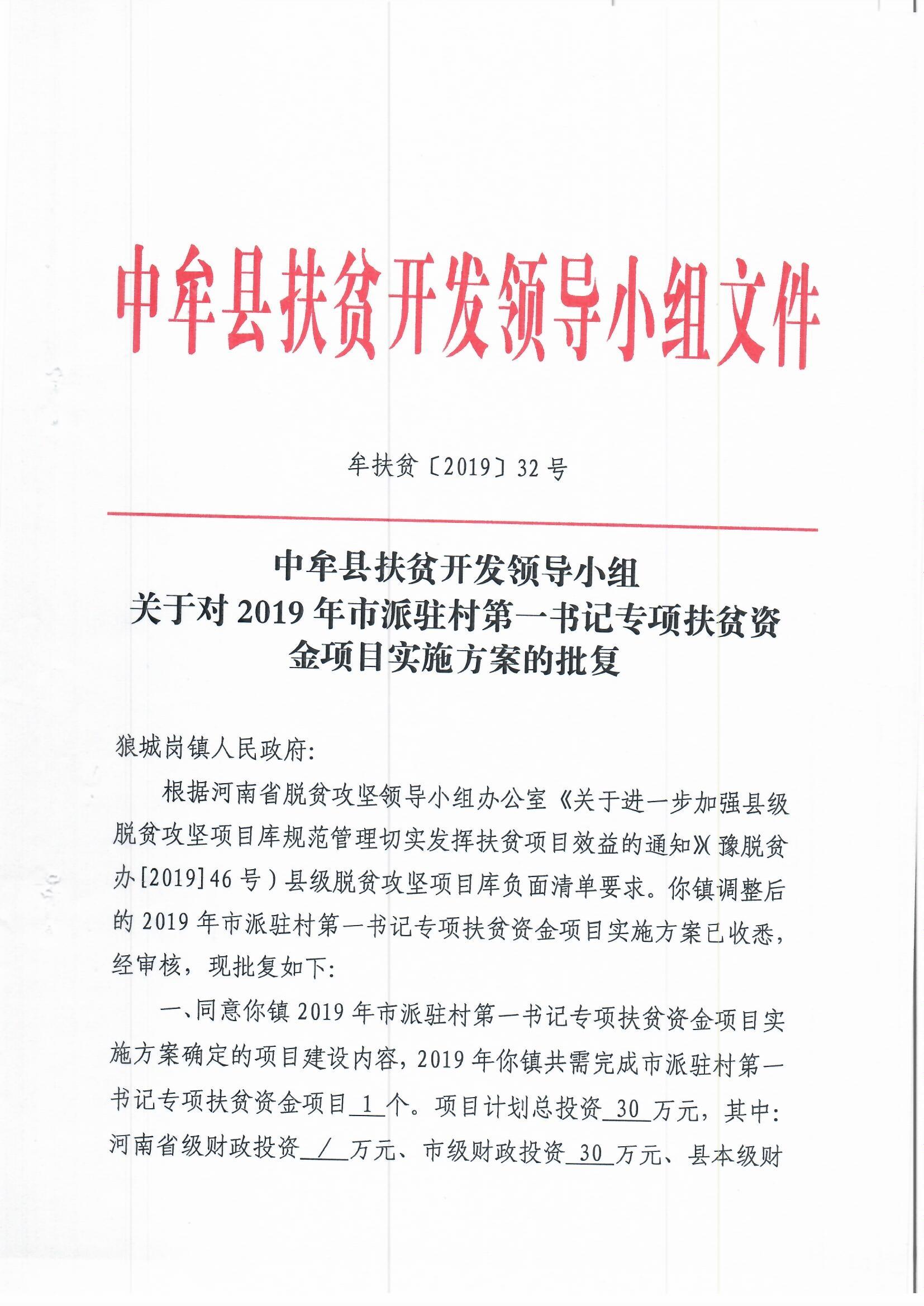 中牟县扶贫开发领导小组关于对2019年专项扶贫资金项目的批复