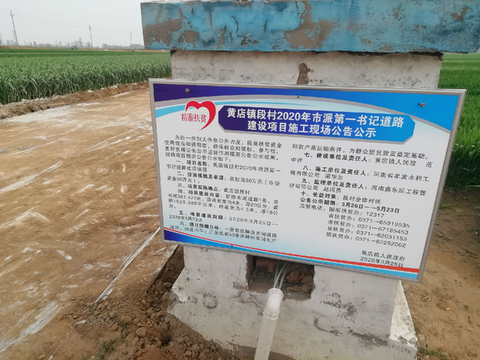 黄店镇段村2020年市派第一书记道路建设项目施工现场公告公示